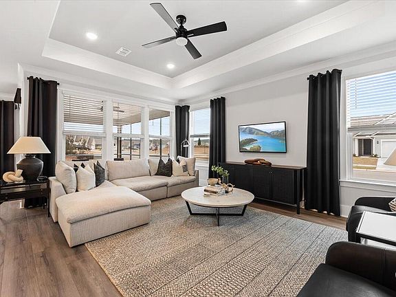 Welcome to the Mystique--where comfort meets elegance. Located in Del Webb, a sought-after 55+ community offering resort-style living. This 3BR, plus a flex space perfect for an office or hobby room and 2 baths. Enjoy a gourmet kitchen with quartz counters & Whirlpool built-in appliances. The owner's suite offers a zero-entry shower for spa-like relaxation. Luxury vinyl plank flooring flows throughout. Step out to a screened lanai overlooking a private backyard--ideal for morning coffee or evening gatherings. Live, entertain & relax in style! Home under construction. Estimated completion Jan 26* Photos are for illustration purpose only*