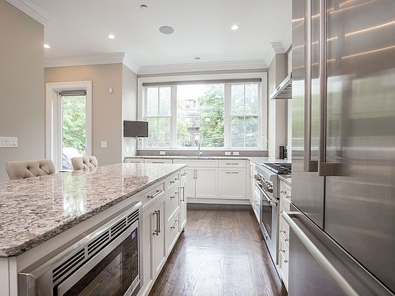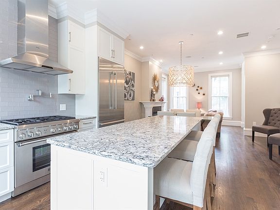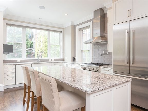 A private entrance welcomes you into this townhouse-style condominium on highly desirable W Brookline Street. This 4-level home features 3 bedrooms, 3.5 bathrooms, 2 parking spaces (1 full tandem), a grilling deck off the kitchen, and a roof deck with extensive skyline views. The main level features a chef’s kitchen with Thermador appliances, gas cooking, and a wine fridge, open to the dining and family room with a gas fireplace. 2nd level has 2 bedrooms, a full bath, and full-size laundry. 3rd level has a large primary suite, walk-in closets, and a spa-like primary bath featuring marble tile, a large soaking jet tub, a glass shower, and a double vanity. The 4th level is a massive great room with a wet bar featuring a dishwasher, beverage fridge, and microwave, this floor also has a full bath with a marble shower. A full set of stairs lead up to the roof deck where you find sweeping views of the Boston skyline. The roof deck is plumbed for gas and water. A must-see!