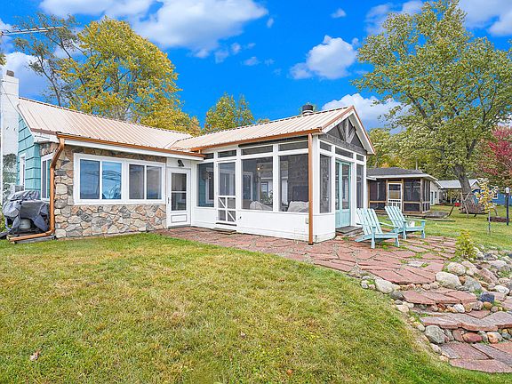 Welcome to one of the most unique property set ups located on Morrison Lake with private, ALL SPORTS lake frontage. The style of this cottage screams character and beach vibes with board & batten accent walls, exposed white cathedral ceilings, wood floors, cedar shake siding, chalkboard accent doors, and copper metal roof (6 years old). Favorite spots are the newer screened-in porch addition with custom wood fireplace (sometimes used as extra sleeping quarters), patio looking out to large cove (no direct boat traffic w/out sacrificing the view), mudroom transformed into extra sleeping for guests (fits a queen bed). The North chain of Lakes consist of 7 in total. Some lake perks included amazing kayaking in many channels and creeks, g reat dock fishing, and swimming. By boat, you can visit The Narrows Restaurant, Coldwater Golf Club, and Country Cove Store for ice cream, pizza, and bait. Enjoy the peaceful, private road off of Waffle Farm Campground with the possibility of you to enjoy their general store, boat rental, volleyball, basketball, mini golf, jump pillow, golf cart rental, arcade, swimming beach, play ground, driving range, food trucks, craft shows, holiday celebrations/parades, lake fireworks, use as an option for extra guests to stay, paddleboat rental, gas/fuel, grill tank fill station, and live music in pavilion. Shore station, dock, kayak rack, and row boat included in sale!