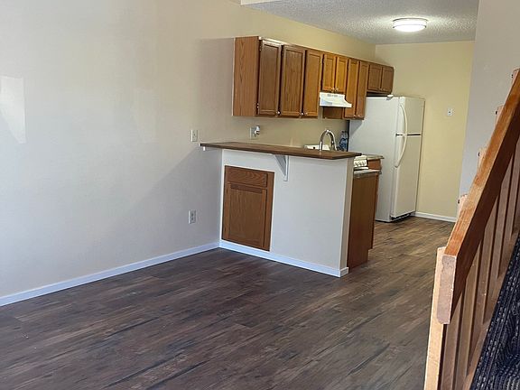 Welcome Home to this 2 bedroom, 1 full bathroom home located in highly sought after Fountain school district 8. As you enter the home, you are welcomed with brand new wood like flooring in the living room, kitchen with refrigerator, dishwasher and stove! Full bathroom conveniently located on the main level as well as one bedroom with stackable laundry tucked away in the closet. Upstairs has brand new carpeting and a HUGE bedroom with ceiling fan. You truly don't want to miss this one!