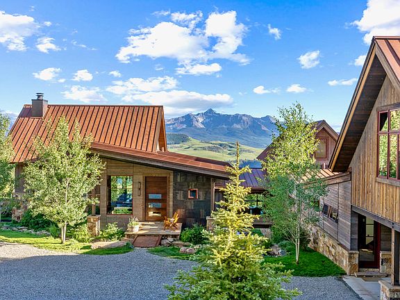 Discover serenity and rejuvenation in this architectural 6-bed, 4-bath, 2-half-bath home nestled on 35 acres with awe-inspiring views from the Wilson Range to the Telluride Ski area. Bordered by an enchanting aspen grove with direct access to US Forest Land, this warm, mountain modern residence offers unparalleled privacy, protection, and natural beauty, overlooking two ponds with a recirculating creek, plus a yoga studio for tranquil practice. Located in the exclusive Gray Head subdivision that offers a recently renovated common owner's cabin, 16 miles of private trails, a tennis court, an ice skating rink in winter, and an abundant trout pond. Enjoy tranquility and adventure amidst breathtaking natural beauty with the Staircase to Heaven Trail out the back door.
