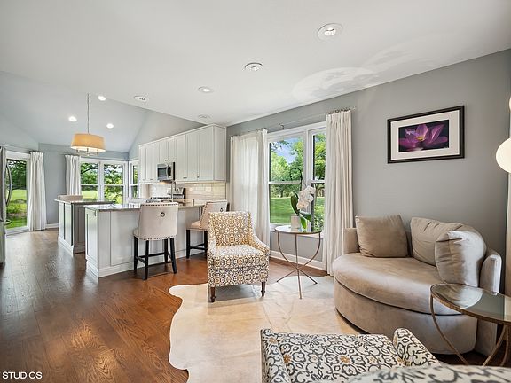 Fabulous home with desirable floor plan in Woodlands of Fiore!! The location is stellar; End Unit, Southern exposure on back patio, on Golf Course with views of Course And Pond. Soaring ceilings, walk-in closets, stunning 1st floor primary suite, Renovated completely with gorgeous finishes and changes to layout. New Kitchen, New Baths, etc. Everything is ideal here. Stevenson High School district. Walk to train, shopping, school.