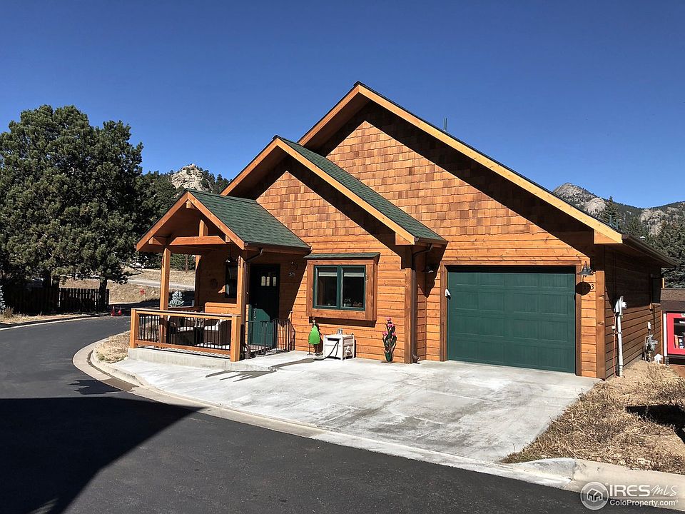 Premier in town location! Four short miles to RMNP entrance. New Home in 2018,solid construction & many extras.Main floor living,walkout lower level. Custom fireplace with hand hewn log mantle and log railings. Vinyl plank flooring. Kitchen (farmhouse sink) and bathrooms all have custom gorgeous wood cabinets with soft close doors and drawers. Central A/C.Tankless hot water heater. Additional workshop/office space w/ separate entrance.Gorgeous!