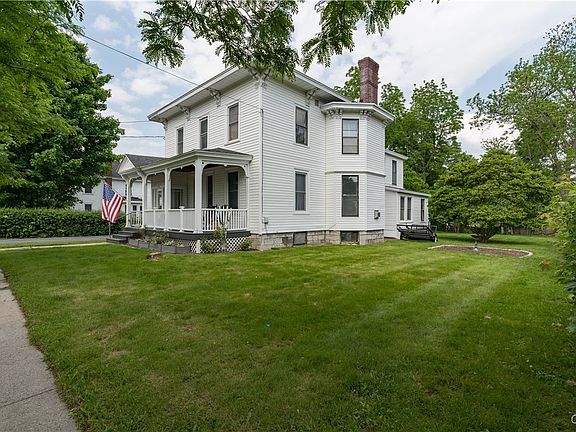 Step into this beautifully renovated Victorian home, seamlessly blending historic charm with modern, stylish updates. 5 bedroom, 2 full bathroom home with detached 2 stall garage. The entry foyer welcomes you with classic Victorian elegance leading into a sophisticated library with intricately designed hardwood floors. First floor also offers stunning open concept kitchen and dining area, kitchen has newly painted cabinets, uplifted countertops, new backsplash, an oversized main living room, 2nd living room with fireplace and new wallpaper, renovated full bath, mudroom and walk in pantry or enclosed porch. 2nd floor boasts 5 spacious bedrooms, fully renovated bathroom and hallway with tons of storage space. Home offers a full walk up attic for any additional storage needed. Laundry room and hallway have all new flooring, guest bedroom has new bamboo flooring, new ceiling and new wallpaper, walls of garage have been insulated. Don't miss your opportunity to see this stunning home!