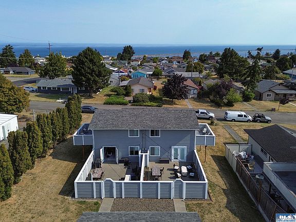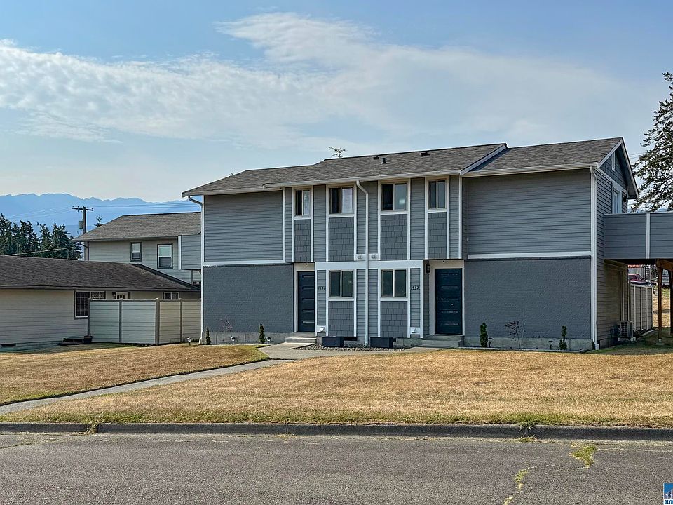 Twin Peaks East — Stylishly Remodeled Duplex with Income Potential, Furnished Interiors, and Mountain Views! Welcome to Twin Peaks East—a newly renovated duplex offering 1,000 sq ft per unit, each with 2 bedrooms and 1.5 baths. Located within the Port Angeles city limits on a quiet west side street, this stylish property sits on an oversized lot and a half and is sold fully furnished in both units. Whether you're seeking a home away from home or a flexible investment, Twin Peaks East delivers. Each unit is thoughtfully equipped for comfort and convenience. The full kitchen comes stocked with essentials including coffee, tea, creamer, salt, pepper, and cooking oil. Guests will find fresh towels and linens, along with shampoo, conditioner, and body wash provided for their stay. Entertainment is covered with a Smart TV, and outdoor cooking is easy thanks to the propane BBQ. Each unit also features an on-site washer and dryer, all major appliances, and a private carport with built-in storage. Additional parking is available via alley access, ensuring ease for both residents and guests. Perfect opportunity to enjoy one side as your primary residence or vacation retreat, while leasing the other side on a flexible month-to-month basis. Enjoy southern exposure from the fenced patio with Olympic Mountain views. Inside, you'll find durable laminate flooring, stylish light fixtures, and a ductless heat pump for efficient heating and cooling. The main level features a welcoming foyer with filtered light, a coat closet, and a spacious living room with stone accent wall and French doors that open to the patio. The designer kitchen includes quartz countertops, grey cabinetry, black appliances, and a stone backsplash. A dining area, laundry room with shelving, and a half bath with tile flooring, quartz counters, and a lighted mirror complete the main floor. Upstairs, a custom metal banister showcases Olympic Peninsula scenery. The hallway’s stone accent wall leads to two bedrooms and a full bath with subway tile surround, accent tiles, rain shower head from the ceiling, handheld wand, and built-in product cubby. The primary bedroom opens to a composite deck with sweeping views of the Strait of Juan de Fuca and the Olympic Mountains. Bedroom two features its own stone accent wall. From this central location, you're perfectly positioned to explore the best of the Olympic Peninsula—just minutes from downtown Port Angeles, the Olympic Discovery Trail, Salt Creek, Hurricane Ridge, Lake Crescent, and the countless natural wonders of Olympic National Park. A rare opportunity to own a fully furnished duplex with stylish upgrades, panoramic views, and unbeatable access to adventure.