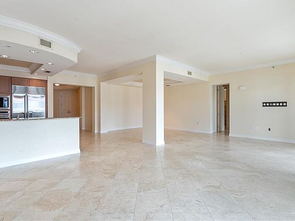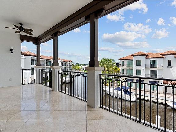 C.18046 - Spacious with an "Open Concept" flow. Elegantly presented with a formal entrance opening to your living room, separate dining area and kitchen all open to a wide marina view and large covered lanai. A 30 ft boat slip is available for separate purchase and allows you to have a boat moored right outside your door and below your balcony. Three bedrooms are totally separate and en-suite. A half bath and separate laundry room are conveniently tucked away. Both guest suites have separate lanais, one overlooking the pool. This condo comes complete with a two car garage which can also double as "boat gear" storage. An excellent "Rental Policy", allowing a total of 12 leases per year with 30 days minimum each lease. Beside the high end appliances like Sub-Zero fridge, Asko dishwasher and Wolf gas stove and a wine cooler, what takes this property up a notch is the Club Membership attached to the property. Located next door and within a two minute walk is one of Naples finest clubs. Pools, work out facility, Spa, Har-Tru tennis courts, golf reciprocals, restaurant and bar and separate member lounge. Priced to sell and decorator ready for your vision! Rent and have a boat!