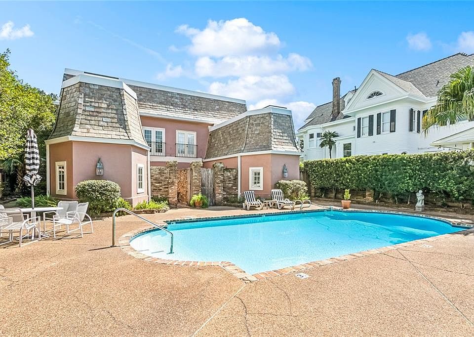 Luxury Garden District Townhouse! 2 PARKING SPACES! BALCONY! This unique townhouse is one of only 2 townhouse style condominiums at The Charles House. Enjoy life as part of a well established complex while living in a unit that functions like a stand alone home! Easy access with electric gated parking under your carport and direct entrance to your unit. Gorgeous details include Travertine floors on the lower level, crown molding, spacious living and dining rooms with lovely view of and direct access to your private patio and the pool. The den with pretty built-in display cabinet could also serve as a 3rd bedroom as there is a vestibule area to a closet and a full bath. Impeccably maintained unit includes a new roof and whole house generator. The 2 upstairs bedrooms are both en suite with generous closets. Laundry closet with side by side washer and dryer is situated in the upstairs hall. Great storage throughout the unit includes a fully floored attic. Fun balcony off of the front bedroom lets you peek at St. Charles Ave to know when the parade has begun! Great for entertaining inside and out. The rooftop common area with grill, tables and chairs is nearby. Simply move your car for a fun Mardi Gras party or crawfish boil under the carport! Walk to the St. Charles Streetcar, Commander's Palace, The Rink and more! Come see this beautiful unit and it's inviting Big Easy lifestyle!