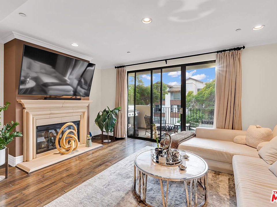 Welcome home to this premium luxury condominium building conveniently located in a prime pocket of Westwood. Enter into this upscale building through a fountain courtyard entrance filled with lush greenery and exquisite Mediterranean surfaces. As you enter into this west-facing, front and center dynamic unit you are immediately impressed by high ceilings, crown moldings, hardwood floors and a stunning row of reductive Roman-inspired colonnade that spatially separate the series of well-proportioned living areas. The chef kitchen flanked by the formal dining room on one side and the "bar area" and living room on the other, is a dream-come-true fully equipped with stainless steel Viking appliances, travertine backsplash, granite countertops and oak cabinetry. Depending on the mood, effortlessly serve your guests in the formal dining room or in the bar area and living room leading to the spacious balcony where BBQ is being prepared. The living room with the stone fireplace flows easily into the spacious balcony through the double sliding doors creating an indoor-outdoor atmosphere for those dreamy LA nights. The split bedroom floor plan allows for maximum privacy between the two ensuite bedrooms. The completely enclosed and expansive luxury master suite boasts a double-sink vanity, a soaking tub, a luxury shower and an oversized walk-in closet. Start your day by enjoying your morning coffee on the balcony that overlooks the Jacaranda-lined treetops in this tranquil street. Luxury guest bathroom at entry, side-by-side washer/dryer, two tandem parking spots, 7 guest parking spots in undercover garage and so much more !
