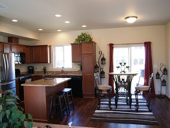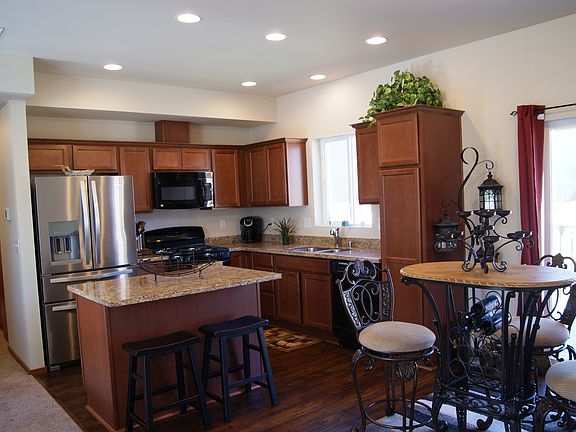 Like new Model Home in Gateway Heights Community. Close to park, golf course. 3bd/ 2.75 ba home. Beautiful kitchen has new appliances, granite counter tops against dark wood cabinetry. Upgraded window blinds throughout. Deck off dining room and a covered patio off lower level for all season barbecuing. Entire home and landscaped yard is very well maintained. Home is equipped with high tech cabling. Two car garage with epoxy sealed concrete flooring.