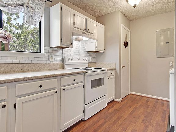 Good size kitchenEnd unitUpdated kitchenDining areaOpen floor planIn unit laundryWood flooring