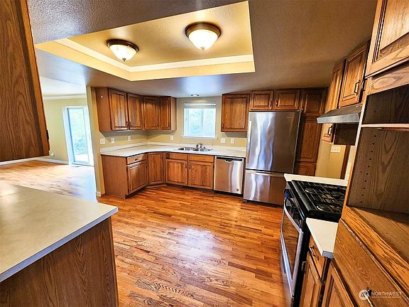 Comfortable one level Rambler in outstanding Bellingham location backing up to Greenbelt. Quiet private cul-de-sac with only 15 or so homes. Primary bedroom/bathroom at one end of home, the other two bedrooms and bath are at the other end. Enjoy a Living Room as well as a separate Family room with gas free standing stove. Lots of wood flooring, updated Stainless Steel appliances including brand new oven & vent/hood. Great private patio area, double car garage with gas forced air furnace and hot water heater. This home comes with all the appliances and leaf guard gutters. Conveniently located to schools, parks, trails, Lake Whatcom and just minutes to Barkley Villages grocery, shops, medical, restaurants, theater and more.