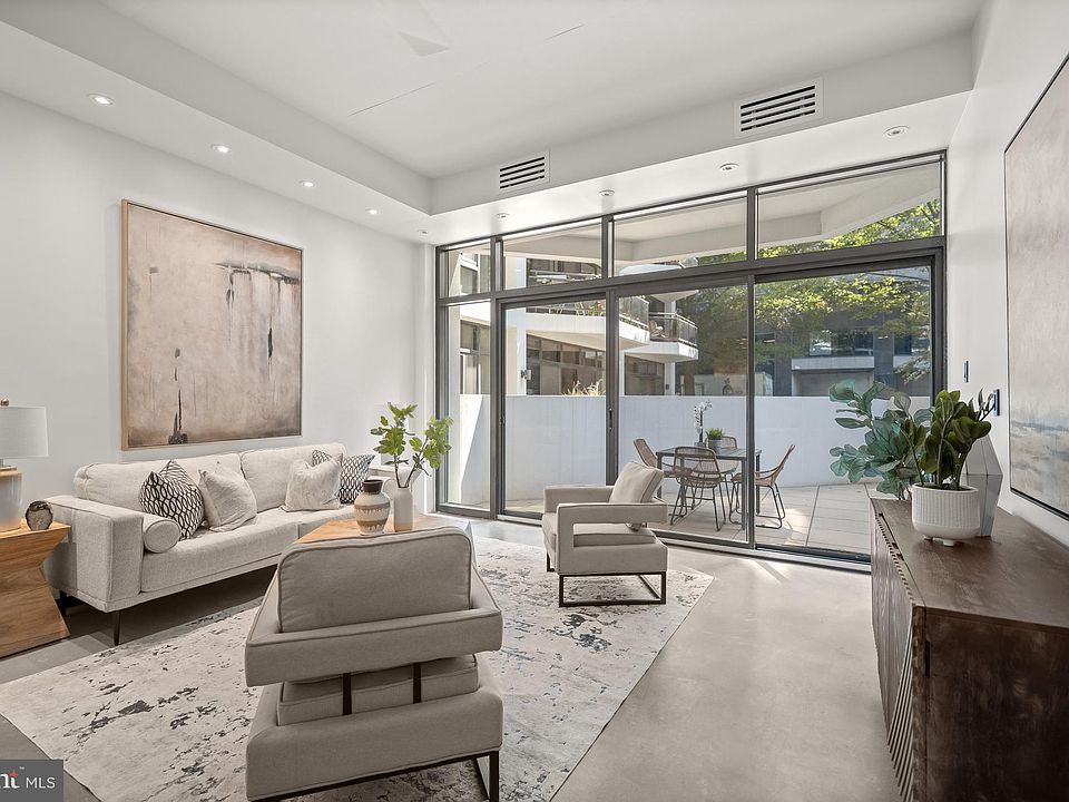 Open Sunday(10/5) 1-4pm. “Smart” condo with rare 325 sq ft sunny patio in the heart of Rosslyn! This recently updated and freshly painted1 BR, 1 BA condo in the sought-after Atrium Condominium stands out as one of the largest private patios in the building—ideal for outdoor entertaining, relaxing, electric grilling and container gardening. Located just moments from the Rosslyn Metro, it offers unbeatable access to Arlington’s best restaurants and shops, with quick, convenient connections to Georgetown and downtown DC. Inside, you'll find a light-filled open-concept living and dining area with dramatic floor-to-ceiling windows, extra-high ceilings, and smart lighting. The first-floor location provides direct access through a private back gate, offering elevator-free convenience. The updated kitchen boasts brand-new GE Profile app-enabled appliances, modern flooring, blending style and functionality. The sunlit primary bedroom features additional floor-to-ceiling windows, a walk-in closet with Elfa organization including an Elfa desk system, and an en-suite bath with a new vanity and upgraded fixtures. Storage is abundant with five closets, including three custom Elfa systems, plus a deeded storage unit on the same floor. Smart features include Apple/Google/Alexa Home-enabled Leviton smart outlets, an Ecobee smart thermostat, and FIOS high-speed internet (included in the condo fee). The Atrium Condominium is loaded with amenities: 24-hour concierge, pool, tennis/pickle ball courts, dog run, swimming pool, gym, sauna, propane grills, on-site dry cleaner, ATM, FIOS (included in condo fee), DIY car wash and community activities.