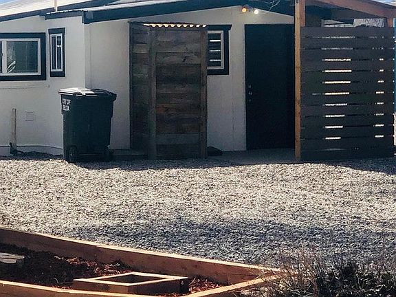 A cute remodeled bungalow - House + Lot + Carport and RV Pedestal! Zoned commercial and Residential, so you can operate a business or commercial enterprise or just live/work/play. New permitted Electrical wiring, newer windows and newer flooring. A great new tile shower also!!. Cute deck and modern entry pergola. Nice farm views in the rear. Set back off the highway. Fire pit, new gravel and a fenced faux turf play area! Mature Trees. Room to build a main home also or a garage with ADU/"mother in law" suite. New huge carport with rusted metal roof, for parking or enclose it for a garage. New power pedestal for RV /motorhome hookup. This property is in the OZ (Opportunity Zone" for incredible tax breaks). A Lot + home + Carport + shed including water and sewer taps, all for under $160k, this is a deal! FHA loan allowed