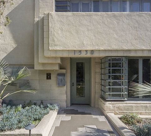 Cultural Historic Monument #235: Lloyd Wright's Henry Bollman Residence. By the early 1920's Lloyd Wright had accumulated experience in theatre, music, landscape, & architectural design. Working associations with his father, Olmsted & Olmsted, Irving Gill, Rudolph Schindler, & Norman Bel Geddes contributed to his personal vision of a new architecture integrating his total experience. Here in his second commission, Wright's vision is expressed through a building system utilizing pre-cast concrete blocks to augment standard construction techniques. The massing of the blocks unites ground & structure, as well as imparting a temple-like feeling to the facade. Style elements draw from theatrical & Meso-american precedents which, when translated to the interiors, impart a sense of drama & intimacy. Anchor of the Sunset Square Historic Preservation Overlay Zone, the Bollman Residence has earned two covers of Architectural Digest, & with the new owner's improvements could deserve a third.