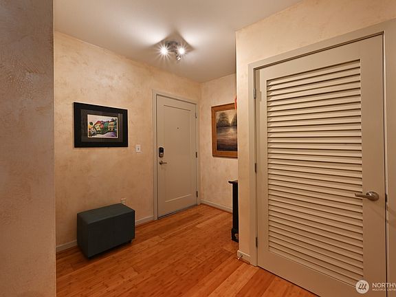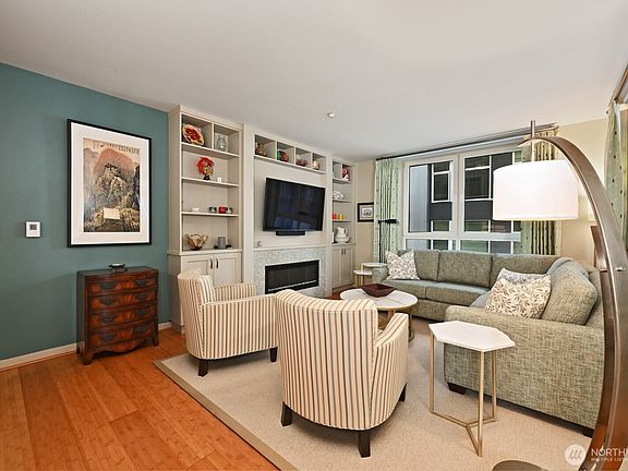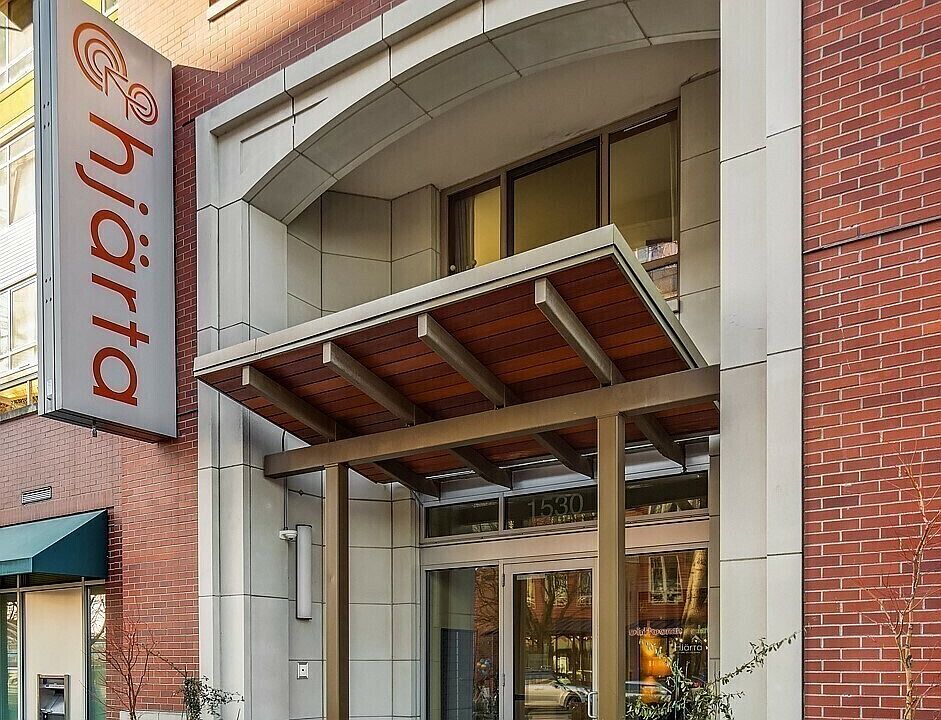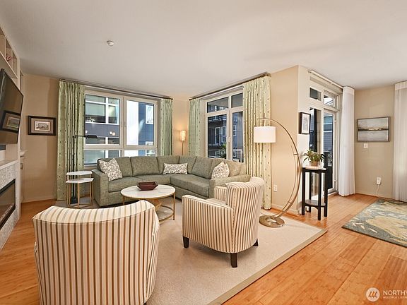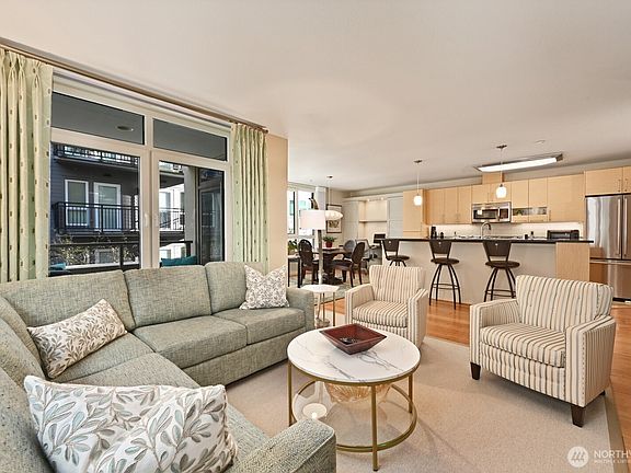 Welcome to Hjarta in the heart of Ballard! This is one of the more spacious one-bedroom condos in the area, offering modern, open living spaces. The kitchen features a large island and newer high-end appliances, complemented by a recently updated bath, lg bdrm & walk-in closet. Custom built-in entertainment center and separate office space—perfect for working from home. A private balcony extends your living space, while secure garage parking and a storage unit add convenience. Steps from Ballard’s best dining, cafes, shops, and transit—ideal for commuting. Built with durable steel-and-concrete construction and LEED certified plus additional building amenities include a roof top patio with a p-patch, BBQs, a gym, & rec room. Well run HOA!