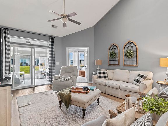 This is a beautifully maintained end unit home which offers large open concept living! This 3 bed 2 bath home has a lovely kitchen with granite countertops, an Island and also a peninsula which allows seating, and a Breakfast Nook. There are stainless steel appliances which are approximately 2 years old. The dining area opens up to the living room which boasts vaulted ceilings and a view out to the pond in the back yard. The primary bedroom has a beautiful bow window overlooking the backyard and the pond. The master bath has double sinks and a walk-in closet. There is a separate laundry room. There is a screened porch with glass and custom shades and a patio out the back. Luxury vinyl plank flooring. There are hurricane shutters. The roof is 2 weeks old. There is a beautiful saltwater pool inside the Garden homes section.