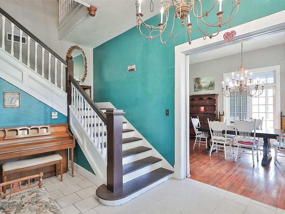 Experience the charm and elegance of this gorgeous two-story colonial home, nestled in the heart of Abilene's historic downtown district. This 4-bedroom, 2-bathroom gem combines classic beauty with modern comforts. Relax and unwind on the inviting front porch or the serene upstairs terrace. Inside, the home boasts ample living space with original hardwood floors and a formal dining area designed for all your entertainment needs. The built-ins add both functionality and charm, enhancing the home's timeless appeal. Upstairs, you'll find the bedrooms, a small office perfect for remote work or study, and a large storage area off the master bedroom. The home is surrounded by a beautiful rock and wood fence, adding to its picturesque setting. Adjacent to the carport, a large two-story shop provides abundant storage or the potential to create your personal getaway space. Combining historical charm with modern amenities, this home is a rare find in a prime location.