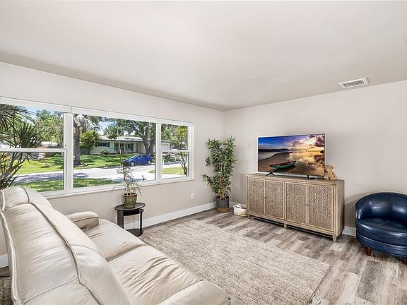 Step into this beautifully renovated 3-bedroom, 2-bath pool home, complete with a bright Florida room and an oversized two-car garage. Every inch has been thoughtfully updated with high-end finishes and designer touches—perfect for the discerning buyer seeking both style and substance. The spacious living area welcomes you with warm, modern aesthetics and flows seamlessly into a chef-inspired kitchen featuring brand-new cabinetry, sleek quartz countertops, an oversized breakfast bar, and stainless-steel appliances. The kitchen opens to a light-filled Florida room, where energy-efficient windows frame serene views of your private pool and expansive patio—creating a true indoor-outdoor retreat ideal for entertaining or relaxing. The primary suite, tucked behind elegant barn doors, offers a spa-style bathroom with dual sinks, quartz countertops, a walk-in shower, and custom cabinetry. Two additional bedrooms are located on the opposite side of the home, providing comfort and privacy for family or guests. The second bathroom features matching high-end finishes, quartz countertops, and a tub/shower combo—with a private entrance from bedroom two. Perfectly located near shopping, dining, and Florida’s world-famous beaches, this home offers comfort, convenience, and undeniable curb appeal. Schedule your private showing today—this one won’t last!