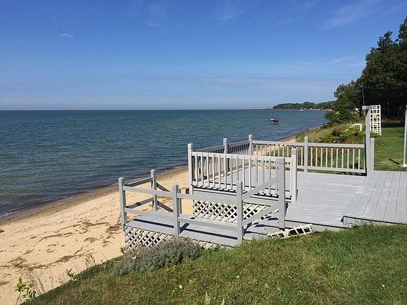 3 bedroom 2 bath Lakefront home with a guest cabin. The views of Lake Huron are spectacular from this property. All 3 bedrooms offer water views. The living room has newer door walls along with newer windows in the bedrooms. The lake side decks are great for entertaining and the property has a steel break wall installed. The sandy beach is a wonderful area for the kids to play. The basement offers extra storage if you've filled the 2.5 car garage that is located on the property. The guest cottage has 2 built in bunks and views over the main house of Lake Huron.