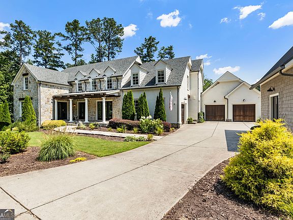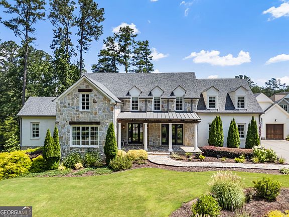 Stunning 2.49-Acre Waterfront Estate in Gated Bentwater Estates Welcome to this extraordinary English farmhouse-style estate by Harrison Design, nestled within the exclusive 10-home gated enclave of Bentwater Estates. Perfectly positioned on 2.49 acres, this stunning residence overlooks a private, fully stocked 4-acre lake, offering tranquil water views, wooded privacy, and access to scenic walking paths. The home's exterior showcases timeless craftsmanship, featuring four-sided brick, premium stonework, and beautiful covered front and back porches. Step through the grand front doors into an airy foyer, where a custom iron staircase wraps around a modern lighting art installation. The main level is filled with natural light and features 12-foot ceilings, wide-plank hickory hardwoods, and rich architectural detail. The 50-foot great room flows seamlessly into a fireside living space with built-in wooden shelving and 16-foot-wide sliding glass doors that open fully to a covered stone patio with outdoor fireplace and grilling nook-blurring the lines between indoor and outdoor entertaining. At the heart of the home is a chef's kitchen designed for beauty and function, with a 9-foot island and second prep sink, premium appliances including a 6-burner gas range with griddle & pot filler, built-in refrigerator/freezer, and 55-bottle wine fridge. Custom cabinetry extends to the ceiling, complemented by a super pantry w/ custom shelving & a coffee bar-all with lake views. The main-level primary suite is a true retreat, with vaulted 17-foot ceilings and a dramatic wall of windows overlooking the lake. Enjoy private access to the back porch and a spa-inspired bath w/ a freestanding soaking tub, oversized dual shower, separate vanities, dual water closets, and custom his-and-her closets with a private washer & dryer. The ultimate in convenience. Also on the main level: a stunning formal dining room with butler's pantry & beverage cooler, a private office with French doors opening to the front porch, a designer powder room, a mudroom, and an additional laundry room with abundant storage and a farmhouse sink. Upstairs, four generously sized bedrooms each feature ensuite baths and custom walk-in closets (three of the bedrooms have lake views). A spacious bonus room offers endless potential as a media room, playroom, or teen suite, while a second office provides an ideal setup for today's working lifestyle. The BRAND NEW terrace level adds 2,576 square feet of flexible living space, designed for an Au Pair Suite or multigenerational living. It includes a fully ADA-compliant in-law suite with two bedrooms, full kitchen, private bath, and exterior access, plus a pre-planned elevator shaft for future accessibility. This level also features a 60-foot entertaining space, a theater room, and three oversized storage rooms. It's perfect. A separate finished structure adds flexibility-perfect for a gym, art studio, or fourth garage. The expansive, fully fenced backyard is ready for your dream pool, fire pit, weekend cornhole tournaments, or outdoor movie nights. It's ideal for entertaining or simply relaxing in your own private retreat. Every detail of this home reflects intentional design and superior craftsmanship-from the rounded drywall corners and designer finishes to the light, airy palette and 10-foot ceilings. Located in one of the area's top school districts and just minutes from downtown Alpharetta, Crabapple, Avalon, and GA-400, this exceptional property blends waterfront luxury with everyday convenience. This is more than a home-it's a lifestyle. One that invites barefoot games in the yard, tree-climbing adventures, and peaceful evenings by the water. Where luxury meets livability and timeless elegance meets modern comfort. Welcome Home.