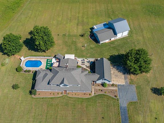 You can have it all in this custom built, Campobello estate. Sitting on 8 green acres, this home features a wraparound porch, a salt water pool, massive storage including two garages, and more. Walk inside to be greeted by the spacious, traditional layout with gleaming hardwood floors throughout the bottom floor. The master suite is on the main floor and has two walk-in closets and a Whirlpool tub. The cozy in-law suite is the perfect space for guests or live-in family members. The wonderful, large living areas throughout the home are ideal for entertaining or hanging out with family. Gather around the gas log fireplace in the living room when it's chilly or spend time on the massive porch when the weather is nice. There are many updates throughout including all new wood blinds and updated stainless kitchen appliances. The large kitchen has granite countertops, and a charming breakfast nook. You'll love the ample storage throughout the home - including the large walk-in pantry in the laundry room. This country dream home was made for ideal living in all seasons. Extremely well built and spacious, come see this rare opportunity for yourself today!
