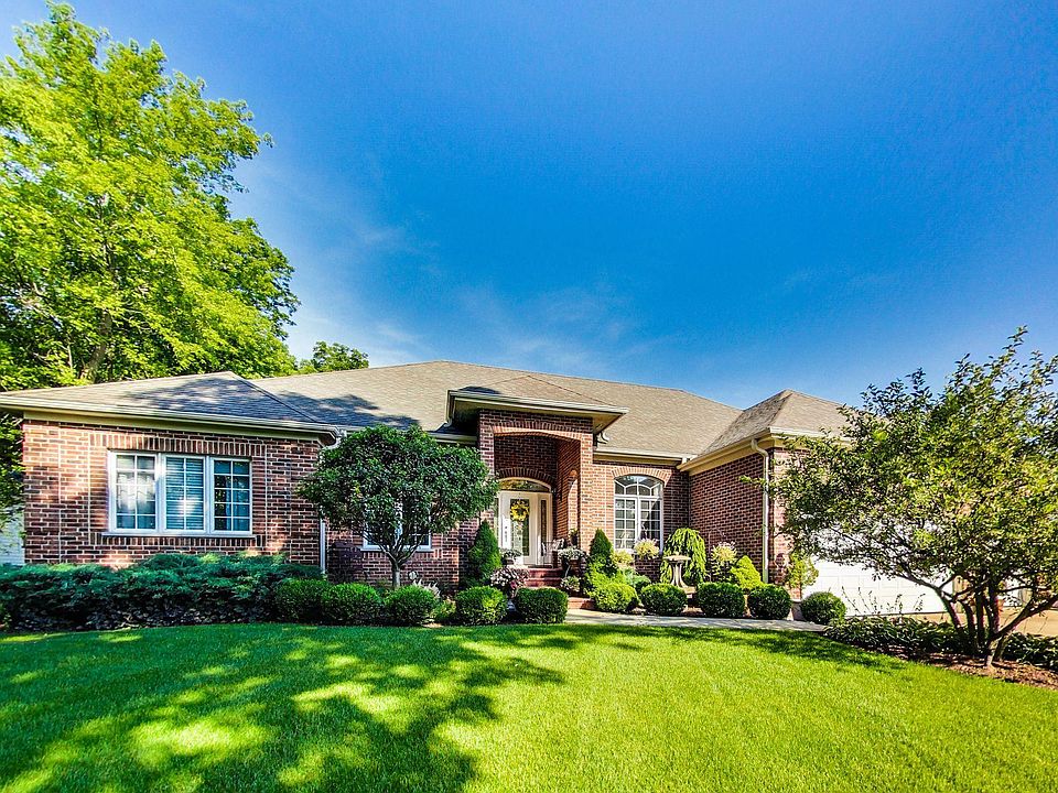 Beautiful all brick ranch in pristine condition! Fantastic floor plan lends itself to entertaining and family gatherings. Gorgeous main floor master suite, gourmet kitchen, formal dining room, incredible great room with fireplace. Finished lower lever with rec room, 2 additional bedrooms, bar, wine cellar and another bath is great for parties and extra guests. Stunning outdoor space with built in BBQ on the Palmer 10th fairway completes the fun! You'll fall in love with this sun filled home....it's a very special place!