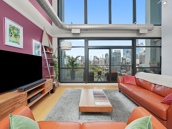 Experience elevated city living in this modern 2-bedroom, 2-bath duplex loft with soaring 23-foot floor-to-ceiling windows and unobstructed north-facing views of Chicago's iconic skyline. The recently renovated kitchen is a showstopper, featuring quartz countertops, sleek custom cabinetry, tons of storage and premium Bosch appliances. The open-concept living and dining area is designed for entertaining, while the private balcony offers the perfect spot to unwind and take in the city views. Upstairs, the expansive primary suite is a true retreat with two large closets, a custom built-in storage system, and a spa-inspired bathroom complete with a dual vanity and steam shower. The second bedroom and bath provide flexibility for guests or a home office. Residents enjoy top-tier amenities including a 24-hour doorman, recently upgraded fitness center and social room, and a full-service tapas restaurant. Ideally located with CTA buses at your doorstep and easy access to the Red, Orange, and Green Lines, this home places you just a short walk from the lakefront, Grant Park, Museum Campus, shopping, dining, and entertainment. 1 indoor garage parking space for an additional $25,000. All utilities but electricity included in the assessment! This is city living at its best, schedule your tour today!