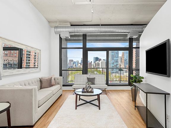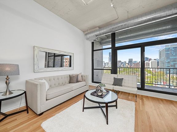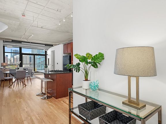 Recently listed on historic State Street. Condo sits on the 7th floor facing north. There is a sweeping view in the near distance of the iconic Chicago skyline. The spacious private balcony overlooks a half mile of stylish low-rise buildings and parks. Floor-to-ceiling windows reveal the lights of innumerable landmark structures in the evening, All walls are freshly painted. Carpeting is newly installed in the bedroom and office/alcove. The large white-oak floor areas (from front door, all the way to window-wall) were just sanded and refinished. Primary bath features all new fixtures, including: faucets, quartz countertop with double basins, lights, mirrors, and toilet. Redecorated half bath is secluded near the entry hall. Enormous closet is a room in itself, also newly carpeted. Deeded outdoor parking is a special spot, with just a single adjacent vehicle. Remote-start can be enabled and seen from the balcony. Massive all-concrete construction from the building's industrial roots give added security and quiet. Ceilings are 11', with sprinklers throughout. Active owner(s) will enjoy 24-hour door staff, a newly renovated workout facility, party room and rooftop patio.
