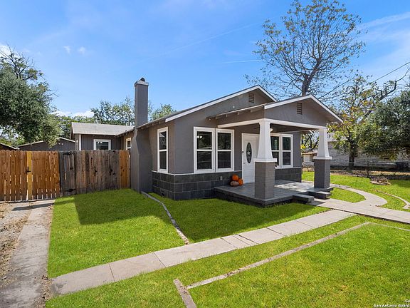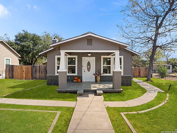 Charming! Adorable and Renovated! Cute entrance to the covered tile patio welcoming you home each day. Precious is how this 1942 built timeless charm home presents itself. Gorgeous, refinished wood floors that add such a unique feeling as you enter this sweet well-maintained home. The spacious kitchen boasts a gas stove, solid custom cabinets, granite and backsplash PLUS large island with gorgeous granite providing extra counter space and plenty of room for visiting with your guests. The Original wood fireplace with stone mantle radiates warmth throughout the home. This charmer has 3 bedrooms and 3 full bathrooms PLUS a 4th room which can be whatever you need it to be-Office, bedroom, craft room, nursery. Plenty of room for storage in closets throughout the home. The large backyard is fenced and has a back patio for grilling. Detached 2 car garage is original and seller added an asphalt floor as well as a built-in tool bench. Extra storage room with door in garage for all of those Christmas decorations and goodies. Texas Pecan Tree in front yard! Home is walking distance to the famous Father Albert Benavides Park and Playground. Via Bus stop nearby.