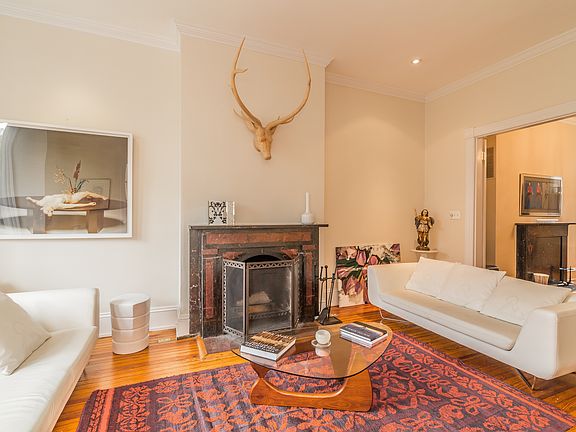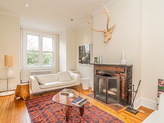 Amazing 3-level home w/ over 1,700 sqft, private patio, deck & reserved parking! Main level features gleaming HWF, large living room w/ fireplace, tons of natural light, huge dining room, full bathroom, upgraded kitchen w/ SS appliances & granite counters. Upstairs has 3 BRs including spacious Master Suite w/ large custom closet. Finished basement w/ exposed brick.