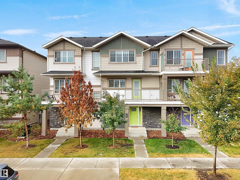 Welcome to StreetSide’s Essex—a stunning 3-storey home offering style, comfort & convenience! The main floor features a bright den, storage area & a double attached garage. The 2nd level showcases a spacious open-concept living area with custom-made cabinets ($10K upgrade), marble countertops, upgraded appliances, endless storage & a large island—perfect for entertaining! Enjoy a cozy living room that opens to a private balcony with a vinyl surface & aluminum railing. This level also includes a powder room & laundry with washer/dryer. Upstairs offers 2 bedrooms with ensuites, including a primary with double sinks, oversized shower & walk-in closet. Condo fees as low as $231 include professional landscaping & visitor parking. Prime location near Meadows Rec Centre, Chalo Fresco, Tim Hortons, and easy access to Henday—everything you need just minutes away!