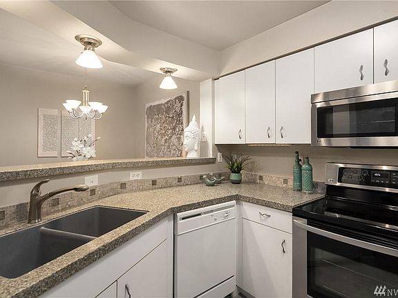 Bright open floor plan, spacious living room w/ built-in office nook, vaulted ceilings and wood fireplace. Private covered patio w/ views of the wooded reserve. Modern kitchen with brushed stainless steel appliances, breakfast bar & pantry, ceramic tile floors, and granite counter tops. Adjacent dining room. Bright bedroom with large walk-in closet. Great location with easy access to 405 and the Park N Ride. Award-winning Northshore School District. Includes 1 covered parking space. Furniture is not included. Landlord pays for water, sewer, garbage. The tenant is responsible for electricity and other utilities. The lease duration is negotiable. Security deposit is fully refundable minus cleaning fees.