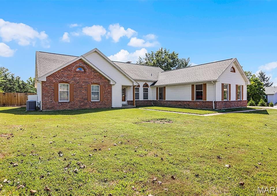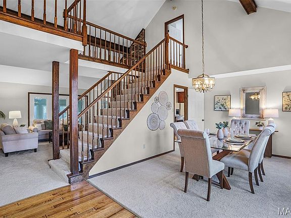 Beautifully updated 1.5-story home in Chesterfield’s sought-after Parkway School District, offering a main floor primary suite plus a second bedroom, new carpet, fresh paint, and a new gas range. The kitchen features granite countertops, custom cabinetry, and a breakfast area with bay window seating and a see-through fireplace shared with the two story vaulted living room, while the dining room also boasts soaring ceilings. Additional main floor highlights include a den/office with French doors, laundry, walk-in pantry, a second full bath and a half bath. Upstairs you’ll find two bedrooms and a third full bath. Enjoy outdoor living with a covered front porch, enclosed rear porch with sliding doors, a level backyard, and an inground pool—all complemented by a three-car side-entry garage and recent mechanical updates, including a 2-year-old furnace and A/C with two zones and a 9-month-old 50-gallon water heater. This is a property ready to entertain and make memories.