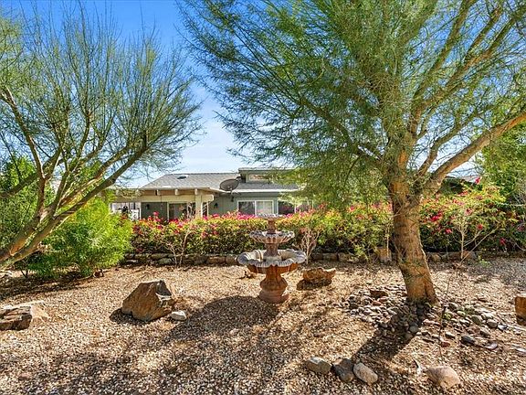 OWN YOUR LAND, LOW MONTHLY HOA FEES, ON PERMANENT FOUNDATION, and with a GARAGE AND ENCLOSED MORNING ROOM!! All within the gated community of Vista Montana minutes from Palm Springs. An amazing property within an immaculate community. This 2-bedroom, 2 bath home has a Zen- like backyard with fountain, large kitchen and interior laundry room. The French doors off the living room leads to a closed- in morning room, dry-walled and chic chandelier. The community of Vista Montana is a 55+ community featuring 2 pools, a dog park, clubhouse, and lush green areas. This property is one of the best values in the desert for low-cost resort living within a meticulously maintained senior community.
