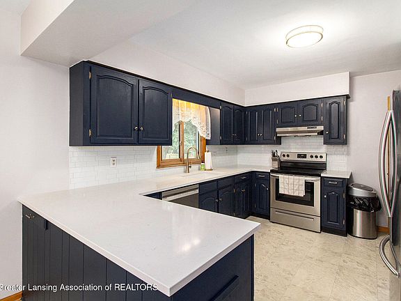 This inviting 3-bedroom, 2-bath ranch offers the perfect blend of comfort, style, and convenience on a spacious quarter-acre lot in a quiet neighborhood. The beautifully remodeled kitchen features sleek countertops, stainless steel appliances, and timeless navy cabinetry accented by a crisp white tile backsplash. A sunlit living room with a wall of windows and cozy fireplace creates a welcoming space for both everyday living and entertaining. Upstairs, you'll find three generous bedrooms with neutral finishes, including a versatile upper-level retreat that makes an ideal private primary suite with walk-in closet. The lower level offers additional living space with a second fireplace—perfect for a playroom, home gym, or media room. Step outside to enjoy the large back deck overlooking the fully fenced backyard, ideal for morning coffee or evening gatherings. Additional highlights include a 2-car attached garage, brand-new furnace, A/C, and hot water heater, providing both comfort and peace of mind. Conveniently located just minutes from major commuter routes, this well-maintained home is truly move-in ready. Schedule your private showing today!