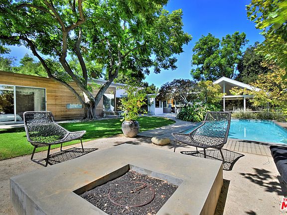 Mid-century modern hideaway on a quiet street in the hills of Sherman Oaks. Light and airy open floor plan with clean lines, walls of glass and a peaceful indoor / outdoor living environment. 4 bedrooms in the main house plus there is a separate, outdoor guest quarters / office / studio with a private attached bathroom. Hardwood floors, living room with a wood burning fireplace and a great kitchen that opens to a large dining room. Secluded yard, patios and a large swimmer's pool. 2 car attached garage with direct entry to the home. Indoor laundry room. Sold before processing.