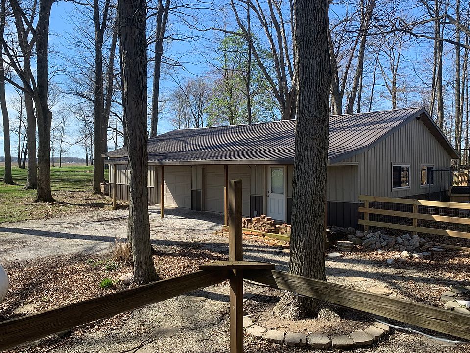 All about the location and this home has it. An almost 2 acre wooded lot with a three bedroom ranch home on a crawl space with a 13' x 13' three season sunroom addition. Enjoy the very open floor plan - fresh paint and some flooring. A 32' x 48' outbuilding with new fencing for livestock or pets. Subject to the sellers securing a new home.