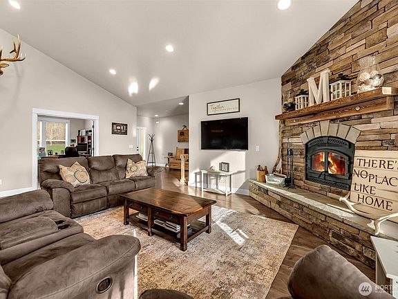 Beautiful 1½-story home on 9.75 flat acres with a large shop featuring guest quarters, RV storage, workout room, storage, and man cave. Home offers 3 bedrms and 2.5 baths, all bedrms on the main level. The primary ensuite includes a walk-in closet, double vanity, walk-in shower, jetted tub, & direct access to the laundry room. Bonus room above the garage could serve as an additional bedroom. Enjoy the open-concept great room with fireplace, plus a dedicated office. Large covered patio with ceiling fan & TV wiring. Newly painted exterior on both home and shop. Only 2+/- miles to downtown BG where you will find all your favorite shops and restaurants just minutes from this retreat! Call today to schedule your private tour!
