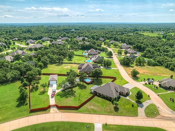 Exceptional corner-lot home on over one acre featuring a pool, workshop, and studio—perfect for buyers seeking space, versatility, and convenience. Ideal for RV, boat, equipment storage, hobbies, or work-from-home needs. Located just minutes from I-40 and approx. 20 minutes to Downtown OKC, this property offers privacy with quick access to city amenities. This well-maintained home includes 4 bedrooms, 2.5 bathrooms, a split floor plan, a dedicated office, formal dining, and a spacious living area with gas fireplace. The open kitchen offers a large breakfast bar, ample cabinetry, breakfast nook, gas stove (with electric connection), and a walk-in pantry with spice storage. Additional features include a 3-car garage and an interior storm shelter. The outdoor space includes a covered patio, sparkling pool with deck, and fully fenced yard. Two outbuildings include a 24' x 15' studio with carport and a 22' x 40' x 14' brick workshop with electricity. A whole-property Generac generator provides reliable backup power. A rare combination of acreage, amenities, and location—ideal for anyone needing room to live, work, create, or store equipment. Seller is a licensed agent in the state of Kansas.