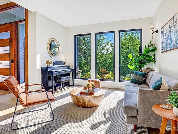 A home unrivaled. The architecture and space is set off by stunning features and finishes that aren't typically found in today's homes. From the solid white oak floors on the entire main level, luxury appliances in the custom-designed kitchen featuring natural quartzite countertops and hidden storage, and a primary ensuite that feels like a luxury spa, you will not be disappointed in the quality of the details of this home. Upon arriving, you're greeted by the oversized solid wood and glass front door, plus custom 7' doors throughout. New fiberglass windows are not just show stopping, but incredibly energy efficient. Recent presidential roof and Hardieplank siding replacement make the home feel new, but in a spacious and private community.