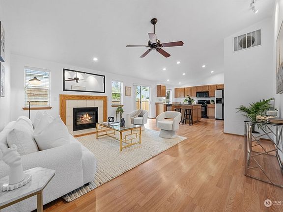 Clean and spacious 3br/2ba rambler in a quiet neighborhood. Home has vaulted ceilings and cozy fireplace with an open floor plan. Two car garage with plenty of storage. Backyard is fully fenced. There is a private community park within the neighborhood. Top rated Puyallup schools and close to abundant shopping and restaurants.