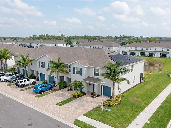 Welcome home! Rarely available almost new END UNIT 2022 Townhome is located in the heart of North Naples nestled in the prestigious and highly sought-after Meadowood community. This immaculate End Unit, 3-bedroom, 2.5-bath townhouse offers the perfect blend of comfort, and convenience. The chef in your family will appreciate the well-appointed kitchen with an island for meal prep and entertaining, stainless steel appliances, quartz countertops, a walk-in pantry, bright white cabinets, and 18x18 tile floors. The living area is the ideal space for relaxation, with sliding glass doors that blur the lines between indoor and outdoor living, by inviting you right out to the large, private, paved lanai. Upstairs you'll find luxury vinyl plank flooring ,a generously sized master suite with en-suite bath, 2 guest bedrooms with shared full bathroom, and laundry area. Boasting solar power on the roof, the homes cost of ownership is minimal. Meadowood has a clubhouse, fitness center, a large pool, half-court basketball court, and children's playground area all with gorgeous views overlooking the lake. The current owner's love how family & pet friendly this community is with sidewalks and street lights everywhere. This home is solar powered and panels are paid off in full representing over 30k in value. Enjoy the convenience of being minutes away from shopping, dining, golf courses, schools, and gulf beaches.
