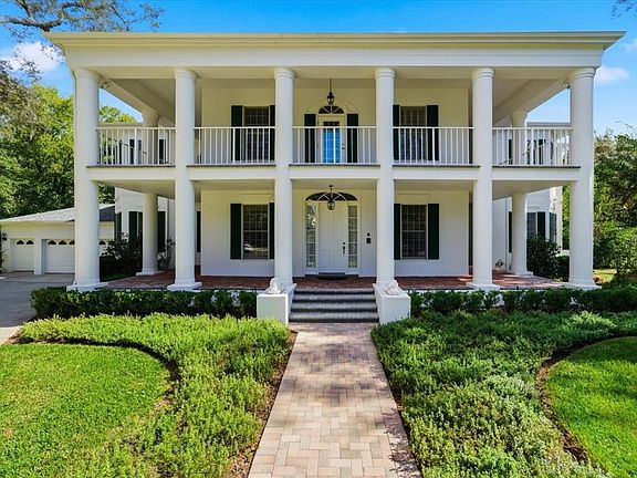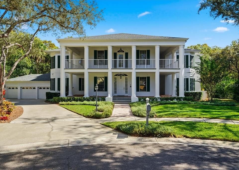 One or more photo(s) has been virtually staged. Stately Antebellum-Inspired Estate in Tampa Palms Nestled on a peaceful cul-de-sac in the beautiful Tampa Palms community, this stunning 4-bedroom, 5.5-bath residence with office, in-law apartment, and 3-car garage blends Southern charm with modern luxury. From its stately columned façade to its sweeping conservation views, every detail of this home reflects elegance and thoughtful design. Inside, the spacious floor plan offers both grand entertaining spaces and intimate retreats. The elegant kitchen features a large center island, abundant cabinetry, walk-in pantry, and a butler’s pantry—perfect for hosting gatherings. The adjoining family room and dinette area open to the outdoor living space, where a sparkling pool in the screened lanai and a spa in the backyard overlook serene, wooded views. The luxurious primary suite is a true sanctuary, complete with a private sitting area, spa-style bath with dual vanities, walk-in shower, and garden tub. A massive built-in closet system and additional walk-in closet provide exceptional storage. Each secondary bedroom offers en-suite access and generous closet space, while the in-law apartment (one of the four bedrooms) includes its own entrance, living area and 2 full baths for added comfort and privacy. The executive office offers built in shelving and hidden room behind one of the bookcases. The home offers abundant storage throughout, and a beautifully landscaped setting.