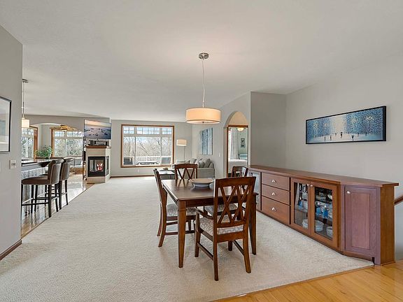 Remarkable and spacious executive townhome in the Regal Crest neighborhood of Prior Lake. The 3,200 square foot home has three bedrooms, three baths, and a three-car garage! Once inside the open-concept main level, you’ll love the large kitchen with custom cherry cabinetry with pull-out shelving, granite countertops, hardwood floors, stainless steel appliances, living room with gas fireplace, a sunroom, maintenance-free deck and fabulous views of the woods. The walkout lower-level has heated flooring, wet bar, stone gas fireplace, family room, two additional bedrooms, a renovated three-quarter bath, hobby room and storage. HVAC replaced in 2023.