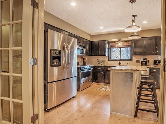 Picture perfect~Featured in Better Homes Magazine&Kitchen+Bath Makeover Edition. Kitchen boasts stainless steel appliance, granite, open floor plan to living & dining. Bathroom offers stunning new vanity & marble counter. 2 fireplaces. Home nestled on a spacious lot offering year around serene views. Large low main. deck makes outdoor cooking & entertaining a joy. walkout LL. New concrete driveway&outdoor shed is a plus. Newer furnace, AC, water softener&water heater. Close to trails&city park.