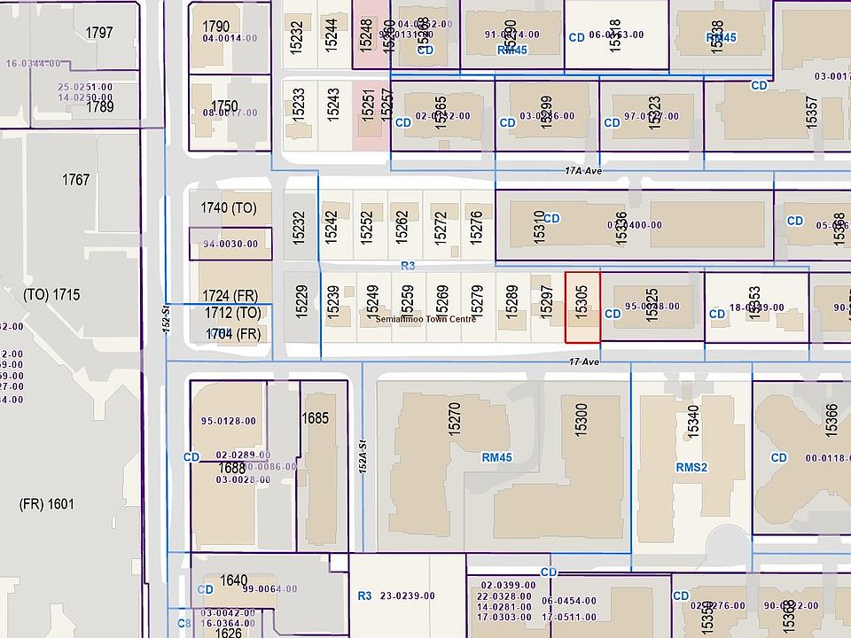 Prime South Surrey location, only a block from Semiahmoo Mall ! This property is part of a potential multi-lot land assembly within the Semiahmoo Town Centre Plan, with opportunity to expand westward. The adjacent property at 15297 17 Ave is also listed, creating a rare combined redevelopment opportunity. Supported by City CAC policies, the area is trending toward higher density residential development, and nearby construction of 52 unit building at 15353 17 Ave demonstrates strong demand. Perfect to hold, rent, or redevelop. Walking distance to schools, shopping, parks, and transit.