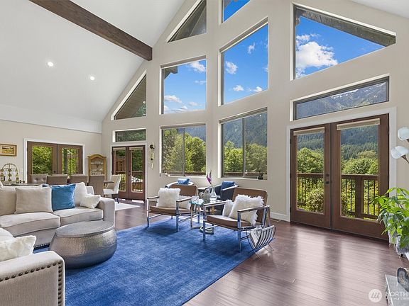 Welcome to your private oasis! This masterpiece sits on over 8 lush acres and offers an open-concept main home with soaring ceilings, walls of windows that frame stunning views, rich hardwood floors plus a DADU with additional living space. A sleek gas fireplace sets a warm ambiance in the living space. Enjoy a primary suite with a spa-like 5-piece en-suite and two bedrooms sharing a stylishly updated bathroom. Designed for seamless entertaining, the chef’s kitchen features high-end appliances and flows effortlessly to an outdoor oasis, complete with a second kitchen, inviting fire pit, and serene pergola. In addition to the main home, the property features a separate one-bedroom residence perfect for rental or Airbnb use, with estimated gross monthly revenue of $3,000–$4,000 in peak seasons—delivering the rare opportunity of two homes on one property for the price of one. A gentle creek with cascading waterfalls meanders through the property, enhancing its serene allure. This Index retreat is a rare gem and a must see!