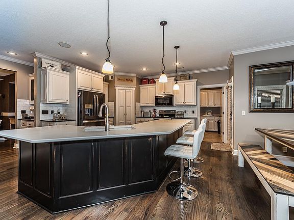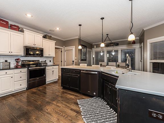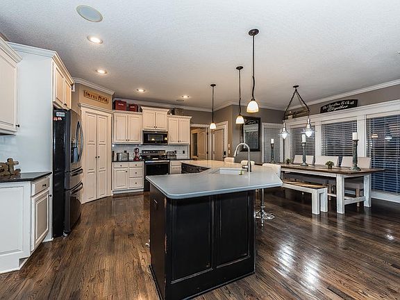 BETTER THAN BRAND NEW! STUNNING 4 BEDROOM HOME WITH TONS OF UPGRADES! Prepare to be amazed by this stunning home - featuring a great open floor plan w/HUGE kitchen with granite/Quartz counters, island, walk-in pantry, & hardwood floors, spacious great room w/ fireplace & wet bar, & formal dining on main level. 2nd Level features a HUGE master suite w/totally updated master bath w/large walk-in shower with multiple shower heads & walk-in closet. Walkout basement is finished w/large family/rec rm, possible 5th BR. Guys are going to LOVE the oversized garage with epoxy finished floor - tons of room for the toys + workshop! Back yard is finished with pergola, large patio with fire pit, storage shed, and iron fencing. Property has wireless controlled 7 zone sprinkler system, security system.