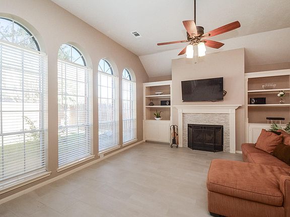 Lovely traditional-style home featuring a desirable split-bedroom floor plan, situated on a large corner lot in a quiet cul-de-sac within the Village of Oak Lake subdivision. This 4-bedroom, 2-bath residence offers formal living and dining areas, along with a spacious family room with a cozy fireplace. The kitchen features an island, breakfast bar, skylight, and sunny breakfast area, and opens to the living room, making it ideal for everyday living and entertaining. The home comes with solar panels, Tesla backup batteries, and an electric car charger outlet. Refrigerator, washer, and dryer are included! Generous natural light throughout enhances the inviting layout, and the home is conveniently located near shopping, dining, and area amenities. The community offers a pool, playground, tennis court and pickle ball court!