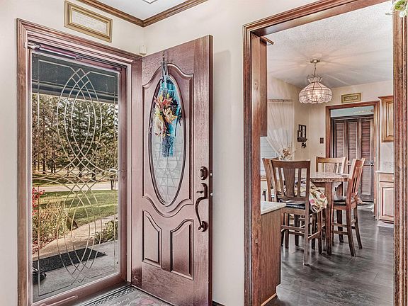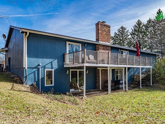 Discover this stunning walk-out ranch in the highly desirable Woodcliffe Estates, perfectly positioned on 1.3 private, tree-lined acres. This spacious home offers 4 bedrooms plus an office, 3 full baths, and 3,288 finished square feet, blending tranquility, thoughtful updates, and plenty of potential for your personal finishing touches. The main level features a granite kitchen, main-floor laundry, and a cozy living area anchored by one of two wood-burning brick fireplaces. The walk-out lower level provides exceptional additional living space with a full basement bar, a large recreation area, the second fireplace, abundant storage, and direct access to the beautiful backyard. Major mechanical upgrades include a new tear-off metal roof (2023), new gutters (2024), new HVAC (2025), new exterior paint (2023), and a new water filtration system with blue light for the private well (2025). Enjoy the outdoors from the expansive teak wood deck (2020) overlooking the serene, wooded perimeter. Additional highlights include a 3-car garage, city sewer connection, private well, and a functional layout designed for everyday comfort and entertaining. A rare opportunity in Woodcliffe Estates—ready for you to make it your own.